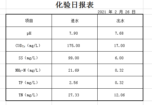 2021年2月26日化验日报表
