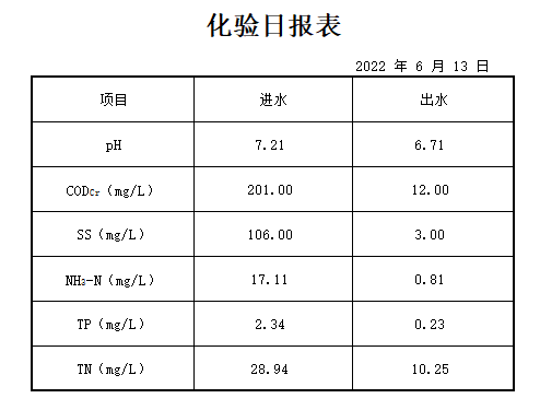 2022年6月13日化验日报表