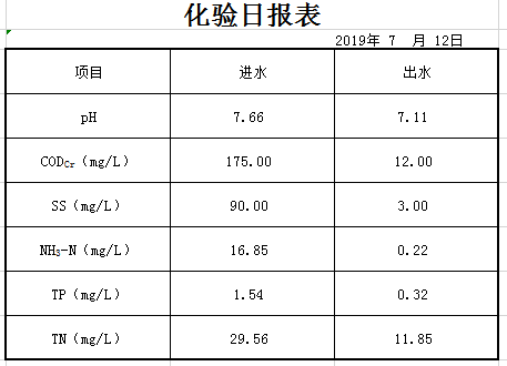 2019年7月12日化验日报表