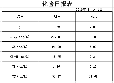2019年8月2日化验日报表