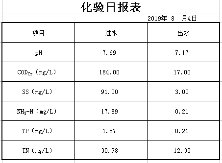 2019年8月4日化验日报表