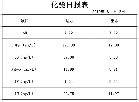 2019年8月5日化验日报表