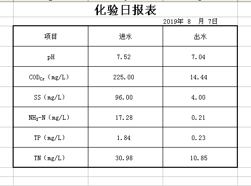 2019年8月7日化验日报表