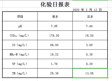 2020年2月12日化验日报表