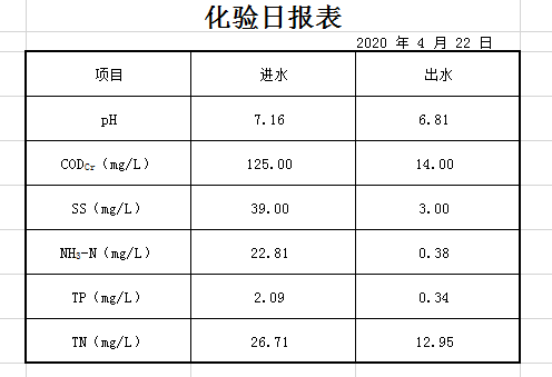 2020年4月22日化验日报表