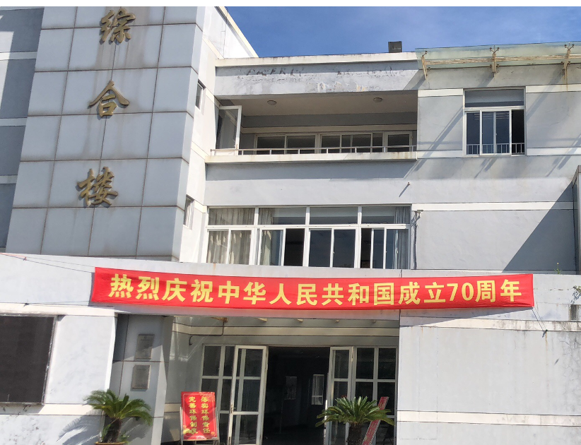 为热烈庆祝中华人民共和国成立70周年,启东市城市污水处理厂积极开展喜迎国庆氛围营造工作,提前在厂区办公楼悬挂“热烈庆祝中华人民共和国成立70周年”的标语,